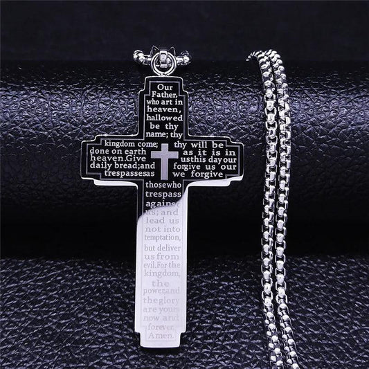 collier croix homme PRIÈRE NOTRE PÈRE | OurFatherPrayerCrossNecklaceMen™